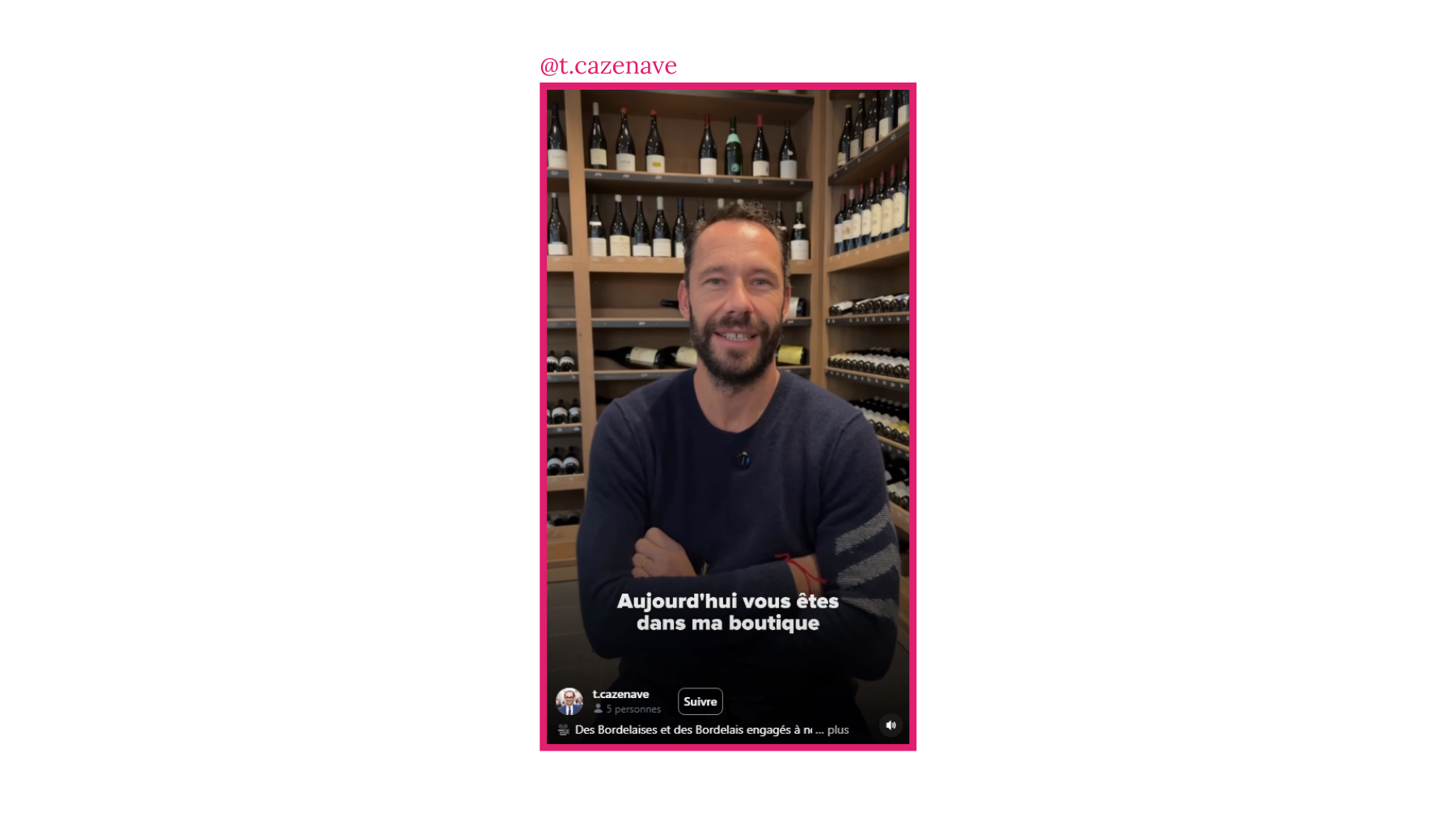 De son côté, pour la vidéo la plus vue de notre corpus, @t.cazenave capitalise sur le soutien de l’ancien tennisman Michaël Llodra, aujourd’hui propriétaire d’une boutique de vin à Bordeaux (57 K vues). Comme souvent sur Instagram, la présence d’une personnalité identifiable élargit l’audience et favorise la circulation du contenu.