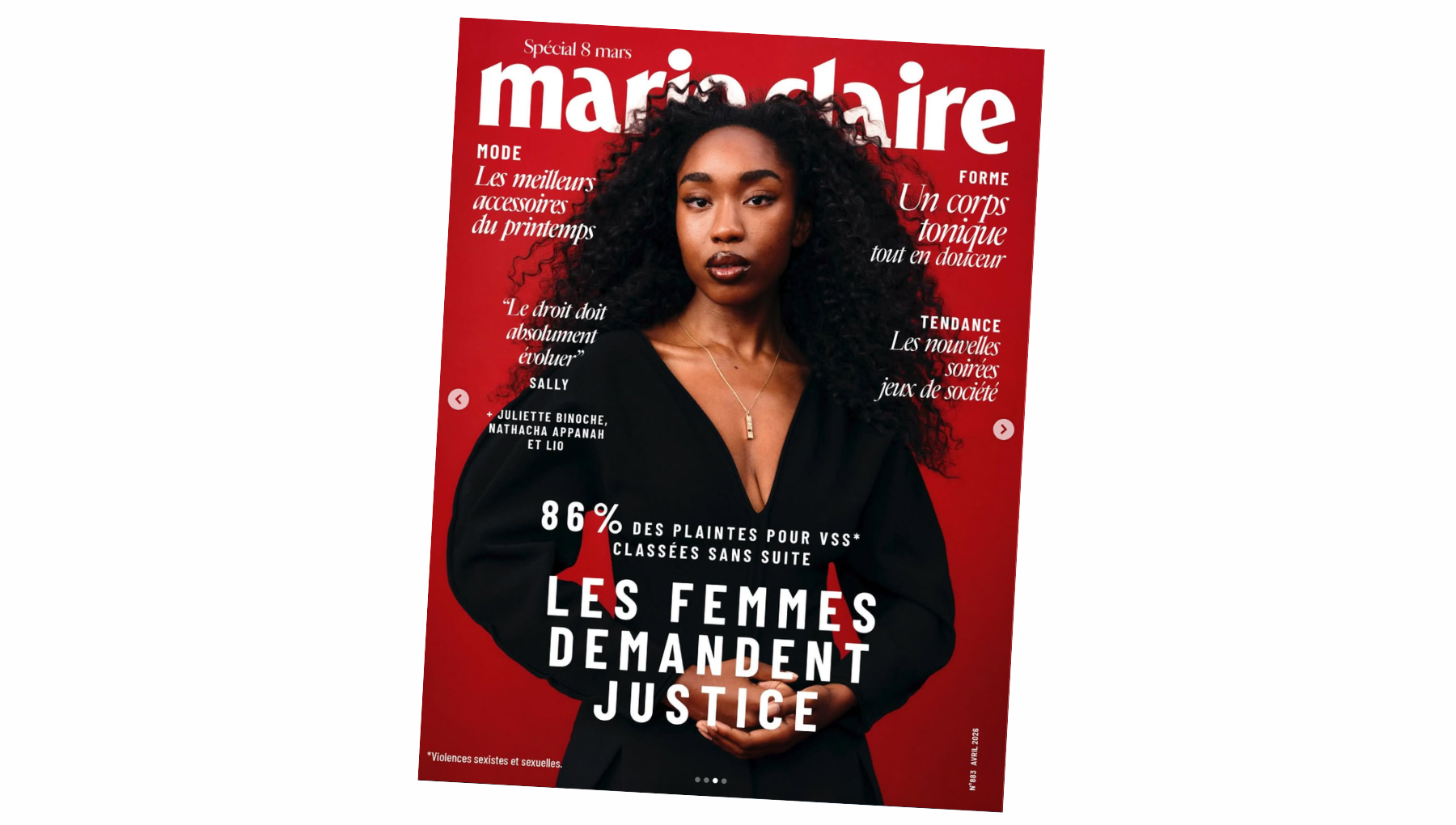 Celles de la noblesse, qui nous donnent l’occasion de saluer, et au travers d’elle le combat de toutes les femmes contre les violences, la présence de l’influenceuse Sally (on vous avait dit qu’elle n’avait pas fini de conquérir le monde) sur l’une des quatre couvertures spéciales 8 mars de Marie Claire, aux côtés de Lio, de la romancière Nathacha Appanah et de Juliette Binoche. La classe.