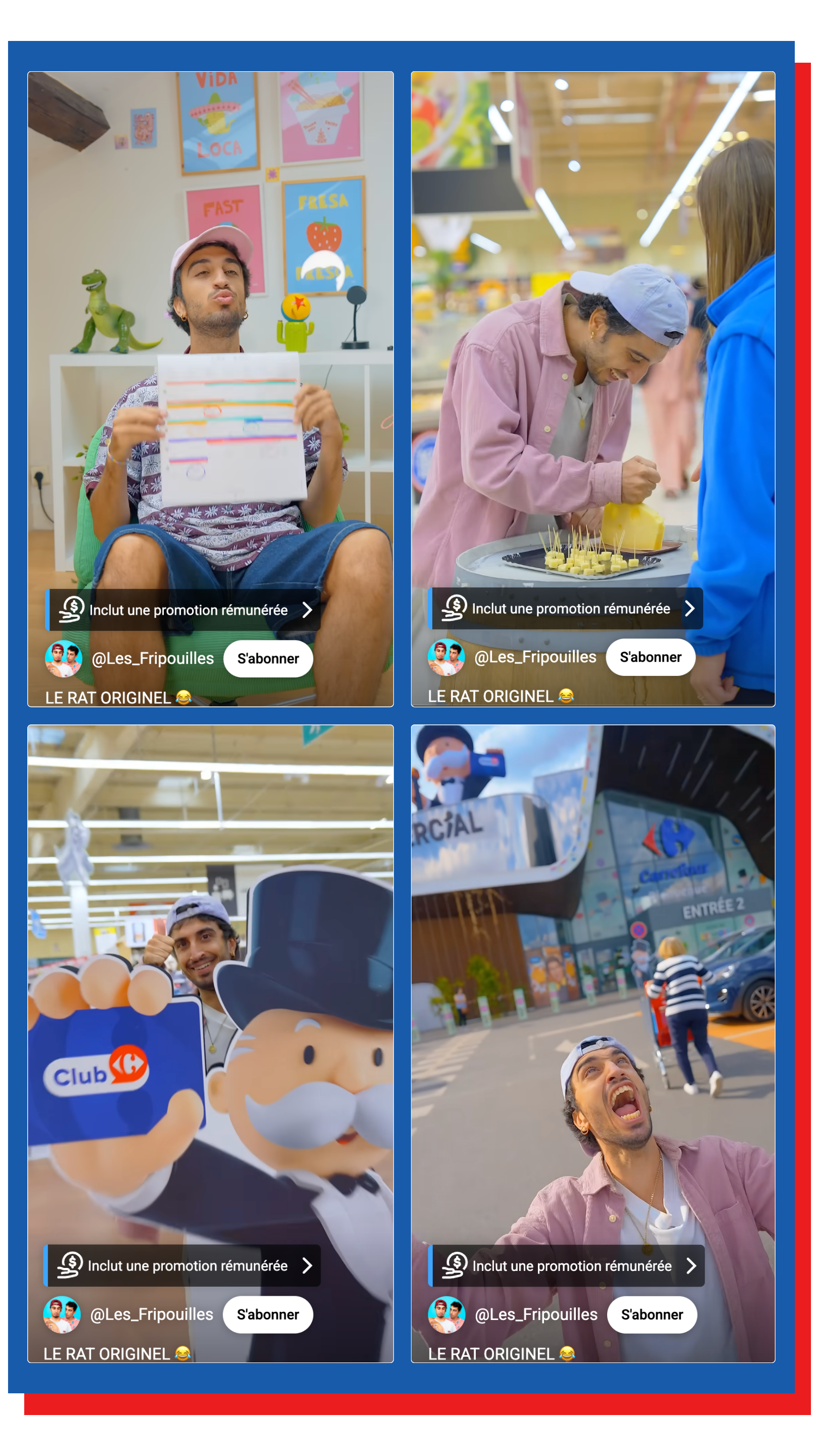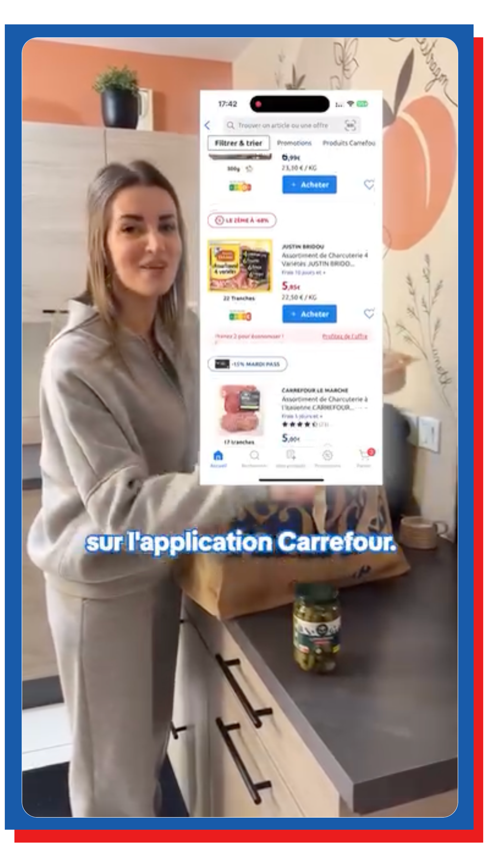 Jules Blondeau : Nous accompagnons les équipes de Carrefour en Belgique depuis près de 5 ans déjà. Carrefour France est venu s’ajouter au deal il y a 18 mois pour former l'un de nos principaux partenaires chez BeInfluence Europe. Avec une équipe dédiée qui varie selon les actualités de 4 à 8 personnes, nous menons pour eux 150 à 170 campagnes par an, ce qui représente près de 400 créateurs activés chaque année. Et cela seulement pour la partie « paid », puisque les équipes Carrefour gèrent en direct tout ce qui relève de la micro-influence.