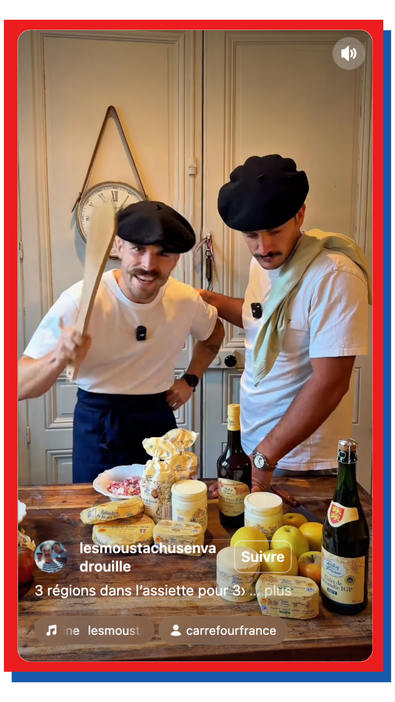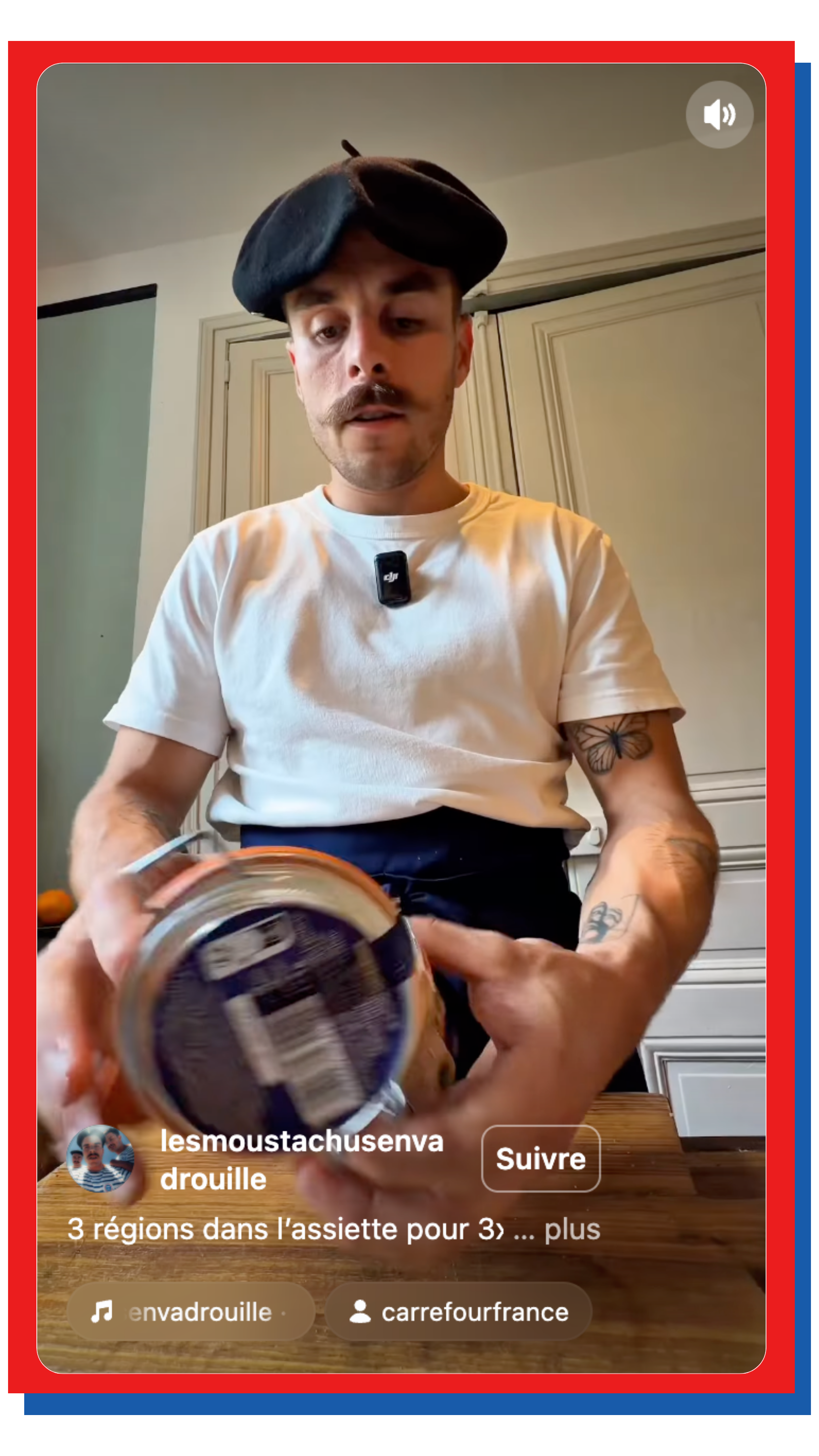 Instagram avec @lesmoustachusenvadrouille (207K followers) pour la gamme Reflets de France