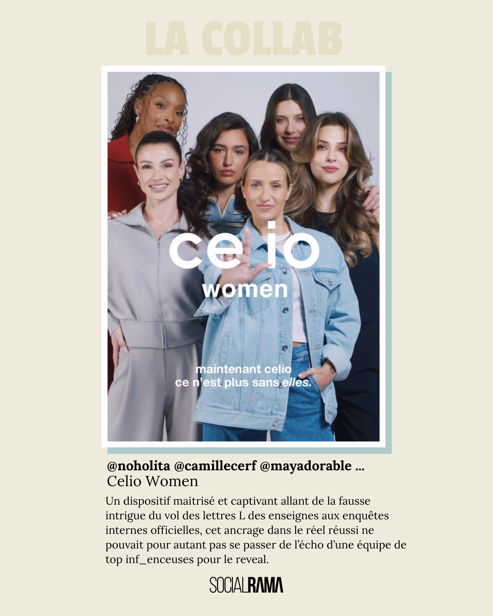 - sur Instagram Celsius avec Lea Elui, Foot Locker / Salomon avec Adèle Castillon , Xiaomi avec Anyme, Cassegrain avec Alice Underground, Nike avec l'équipe de France de foot et Amine.
