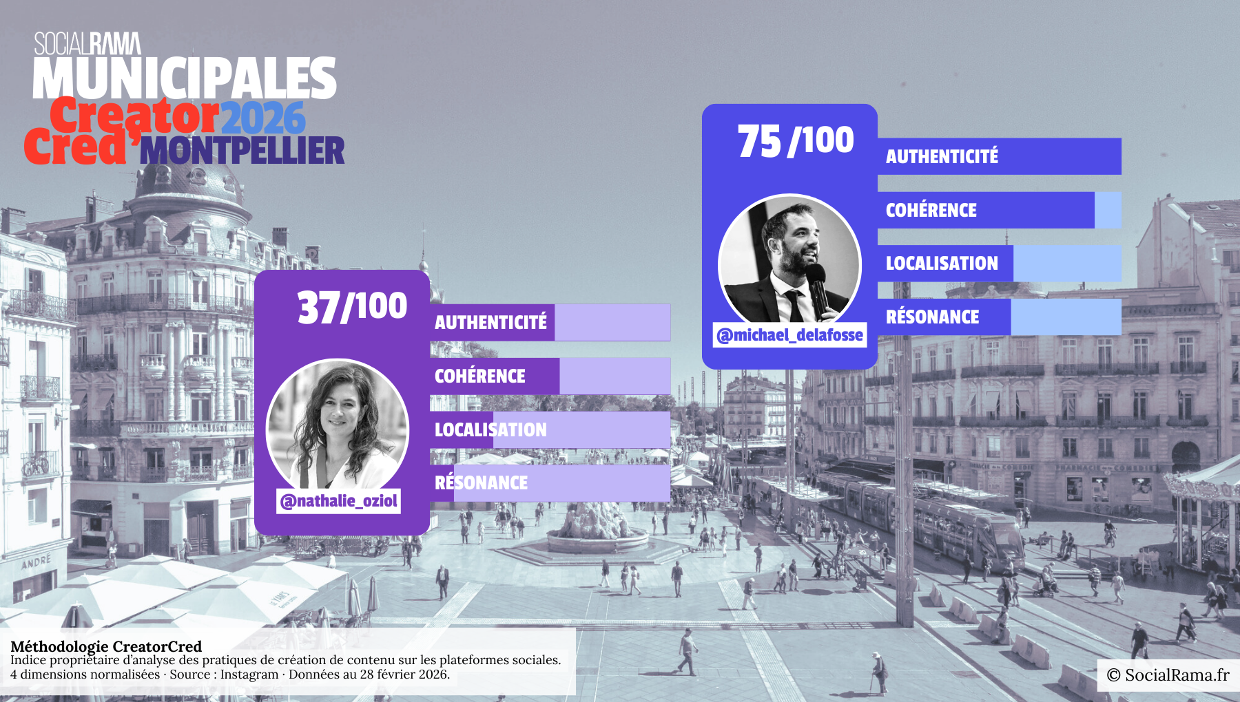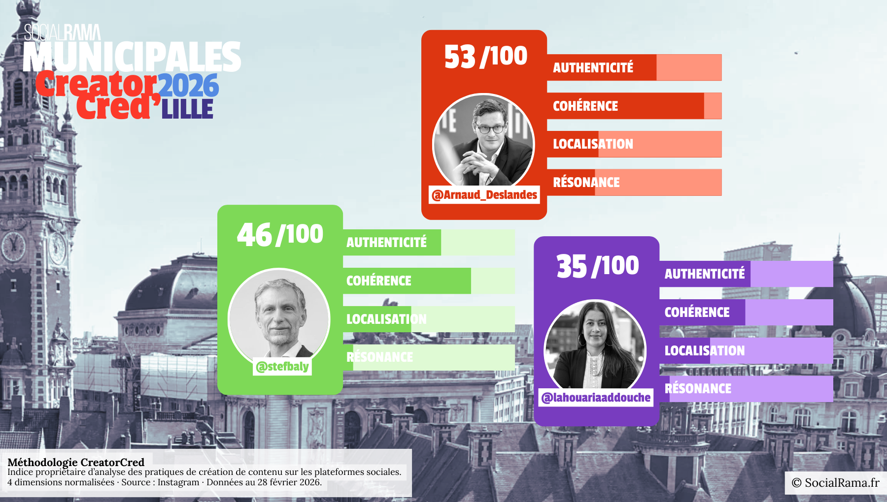 Les élections municipales se jouent aussi sur Instagram : le candidat politique devient un créateur de contenu. À l’approche des 15 et 22 mars 2026, SocialRama a analysé les candidats au prisme de leur CreatorCred', un score exclusif qui mesure leur appropriation des codes des influenceurs.