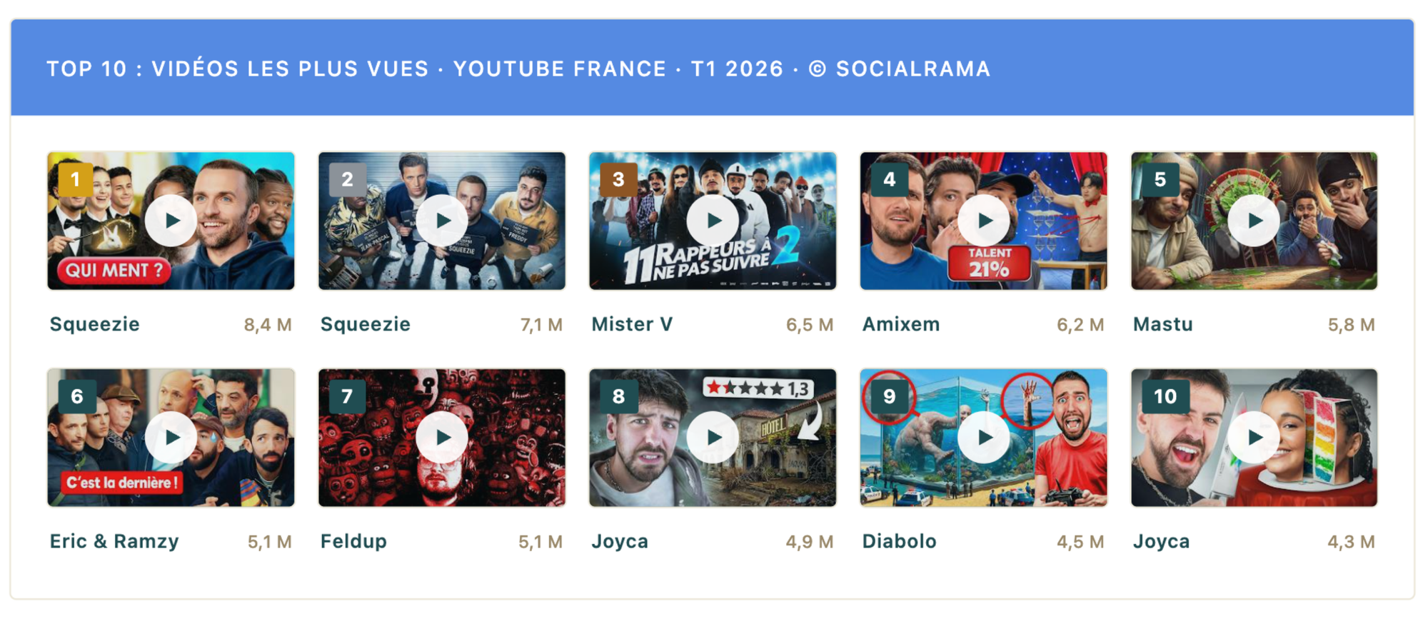 YouTube : le top 30 des vidéos les plus vues au 1er trimestre 2026, notre analyse