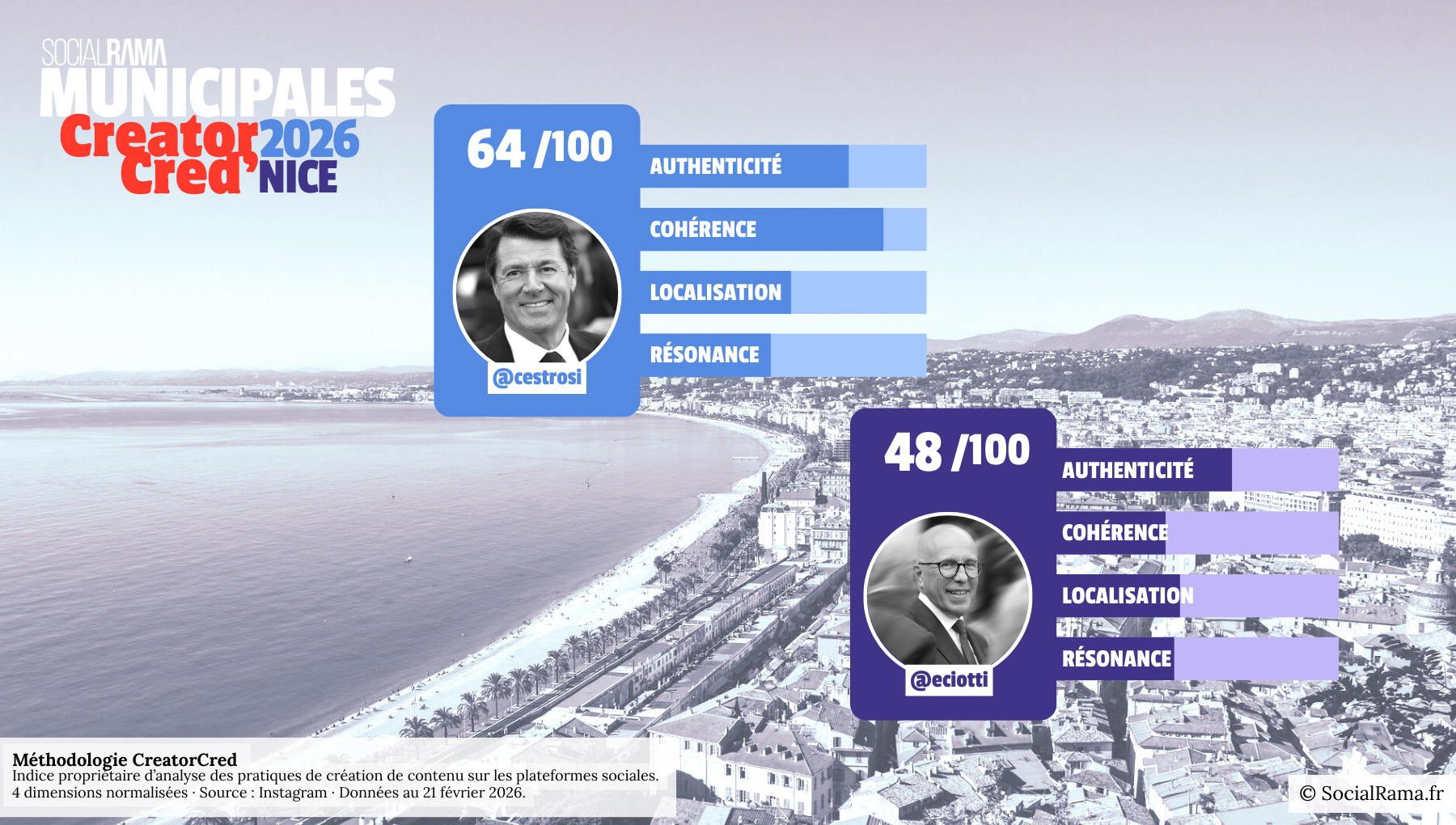 Analyse SocialRama, sources : Instagram, chiffres arrêtés au 21 février 2026