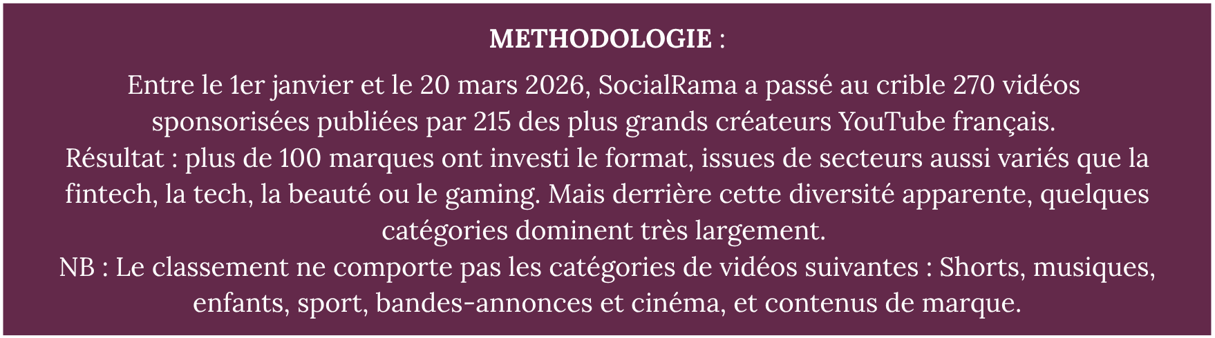 C’est ce que révèle notre analyse des 300 vidéos YouTube intégrant des marques au 1er trimestre 2026. Une démarche synonyme de maturité, qui considère que la présence de la marque dans la vidéo suffit à impacter positivement la brand equity, sans appeler à une action immédiate.